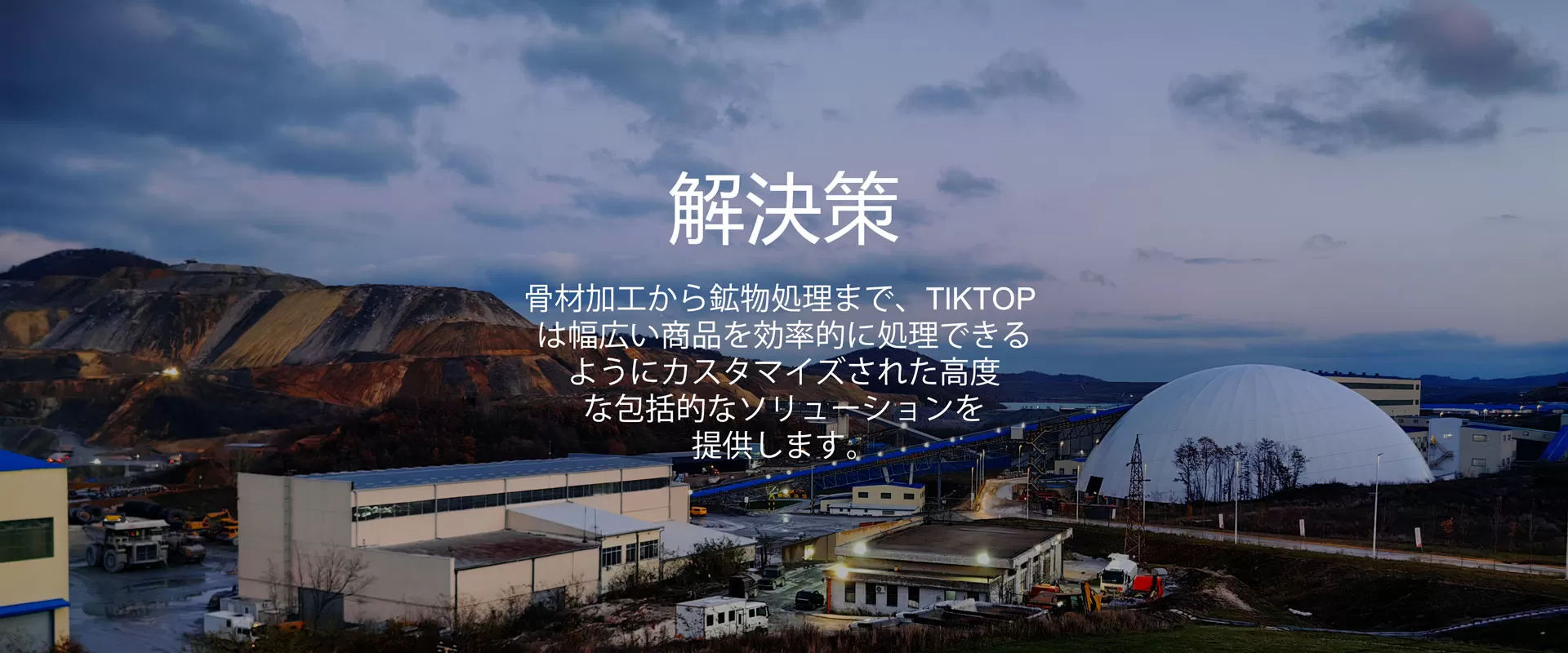 TIKTOPは持続可能な技術分野の先駆者であり、世界中の骨材、鉱物加工、金属精錬産業にエンドツーエンドのソリューションとサービスを提供しています。当社は製品とサービスに関する専門知識を通じて、お客様のエネルギーと水の利用効率を向上させ、生産性を高め、環境リスクを低減する支援を行っています。